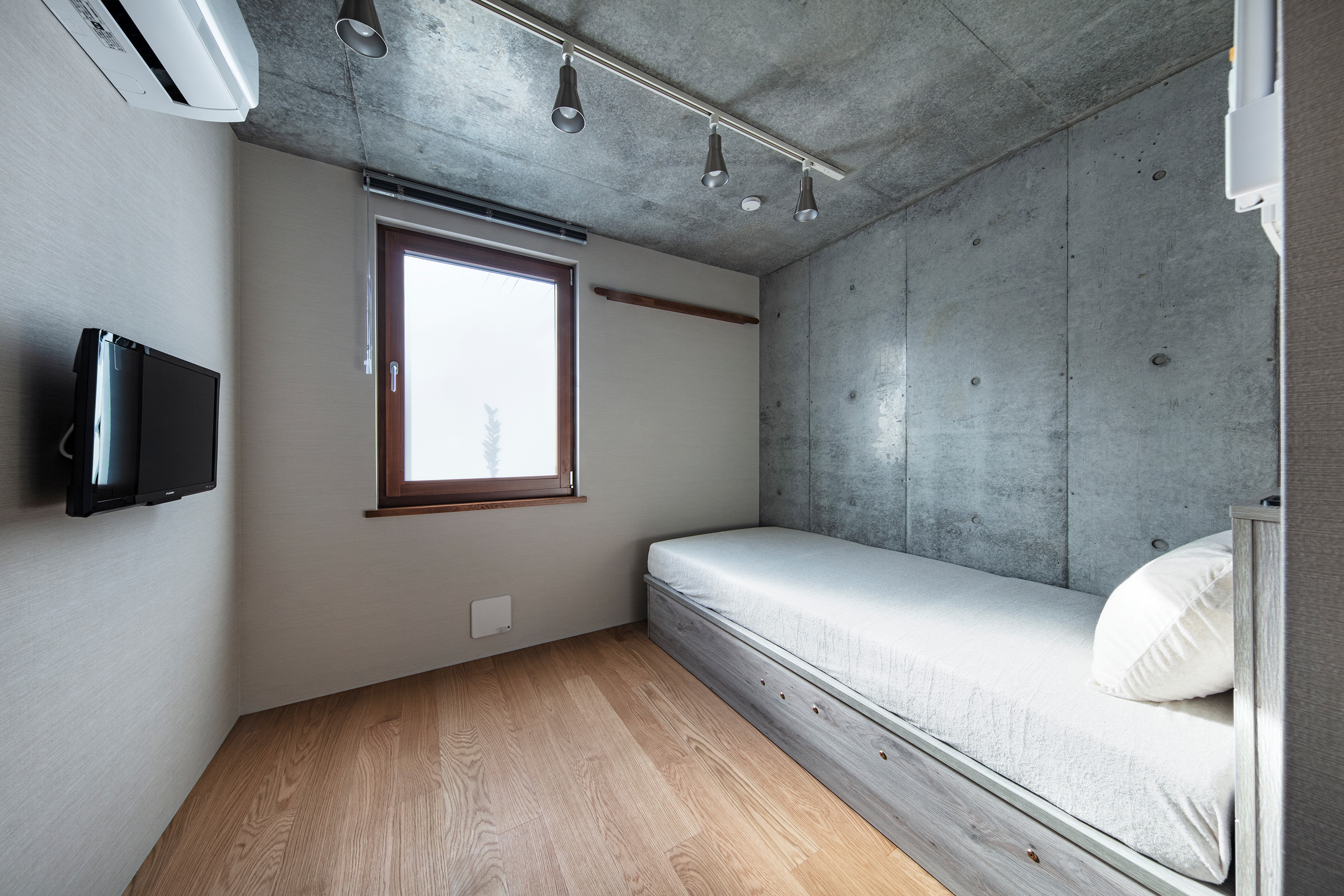遠隔操作機能付きエアコン、冷蔵庫、電子レンジ、壁掛けテレビまで標準装備なのも嬉しい。