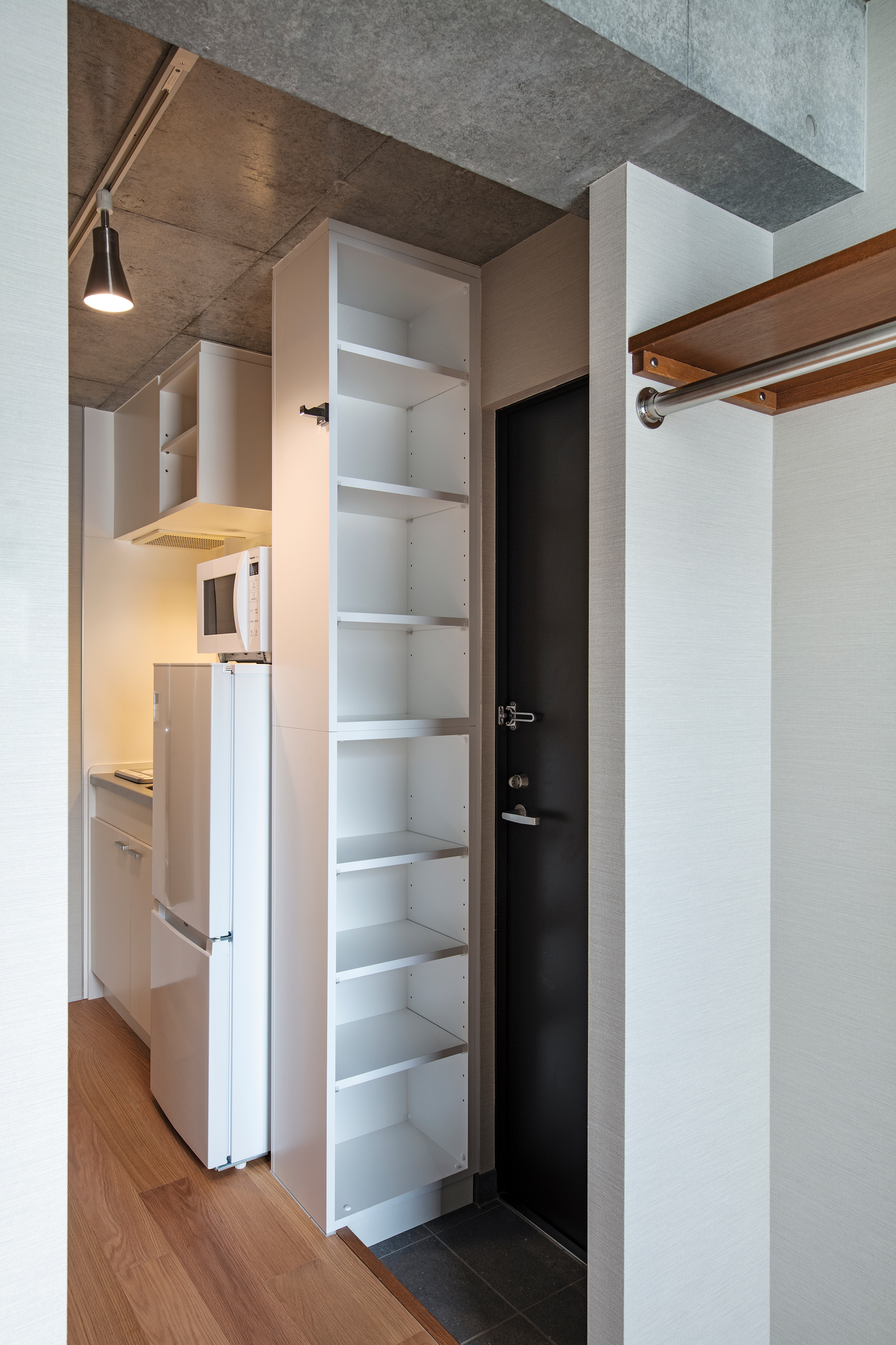 コンパクトなワンルームながらも居室は6畳以上あり、また、水回りが完全にセパレートされているため、居室部分をすっきりと利用することができる。